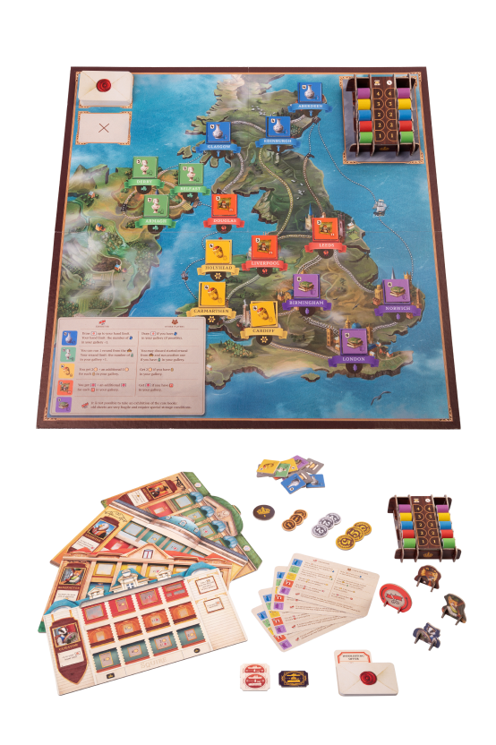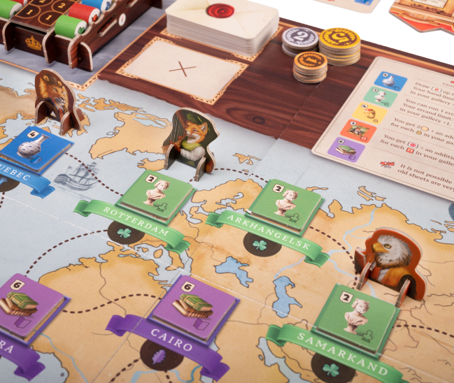 In this strategy board game, you are an art collector traveling the world to buy various artifacts for your gallery, sell art pieces to the market, and organize exhibitions.